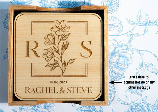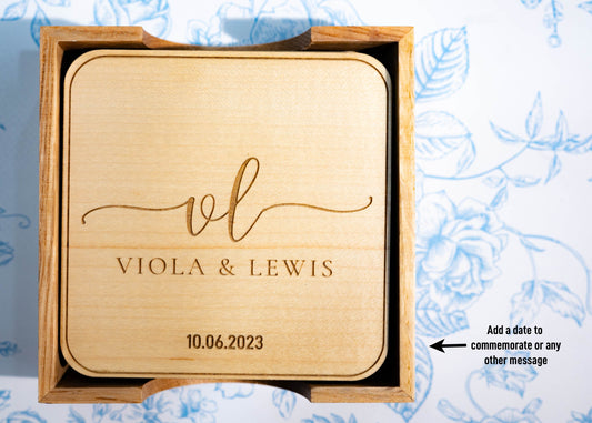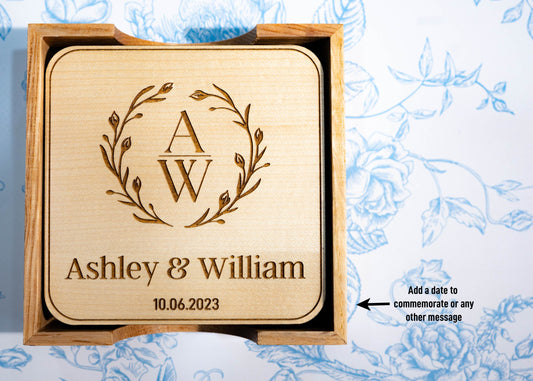 Personalized Coasters with Holder for Couple | Wedding/Housewarming Gift